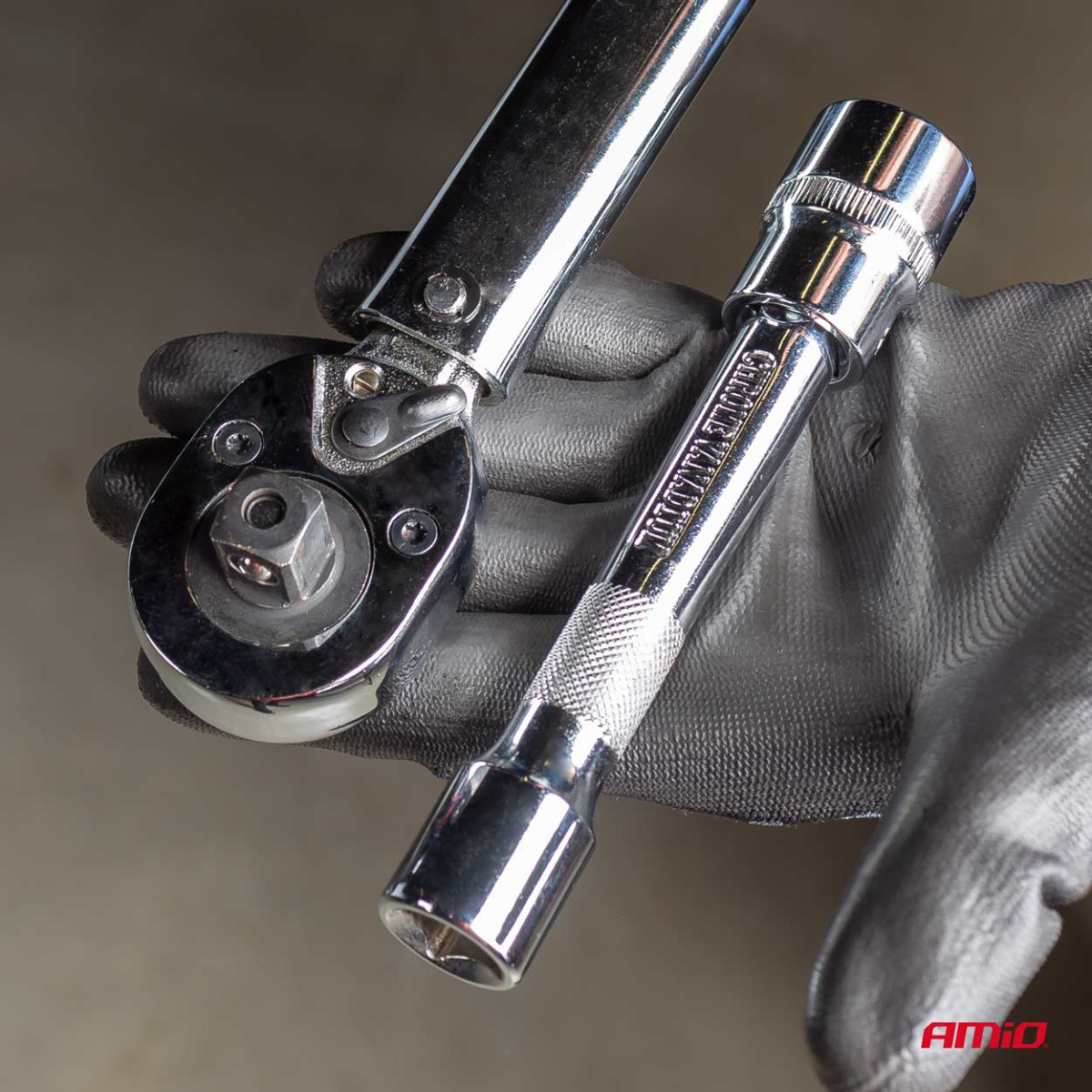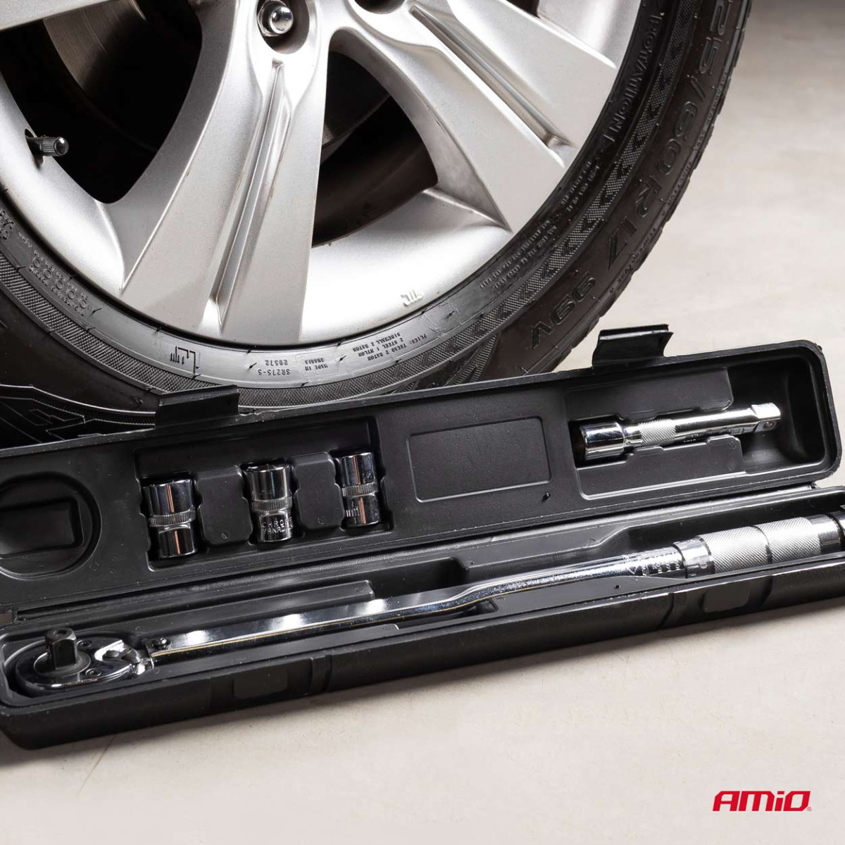 Drehmomentschlüssel mit Stecknüssen 17 / 19 / 21 mm, 40–210 Nm, AMIO-02407