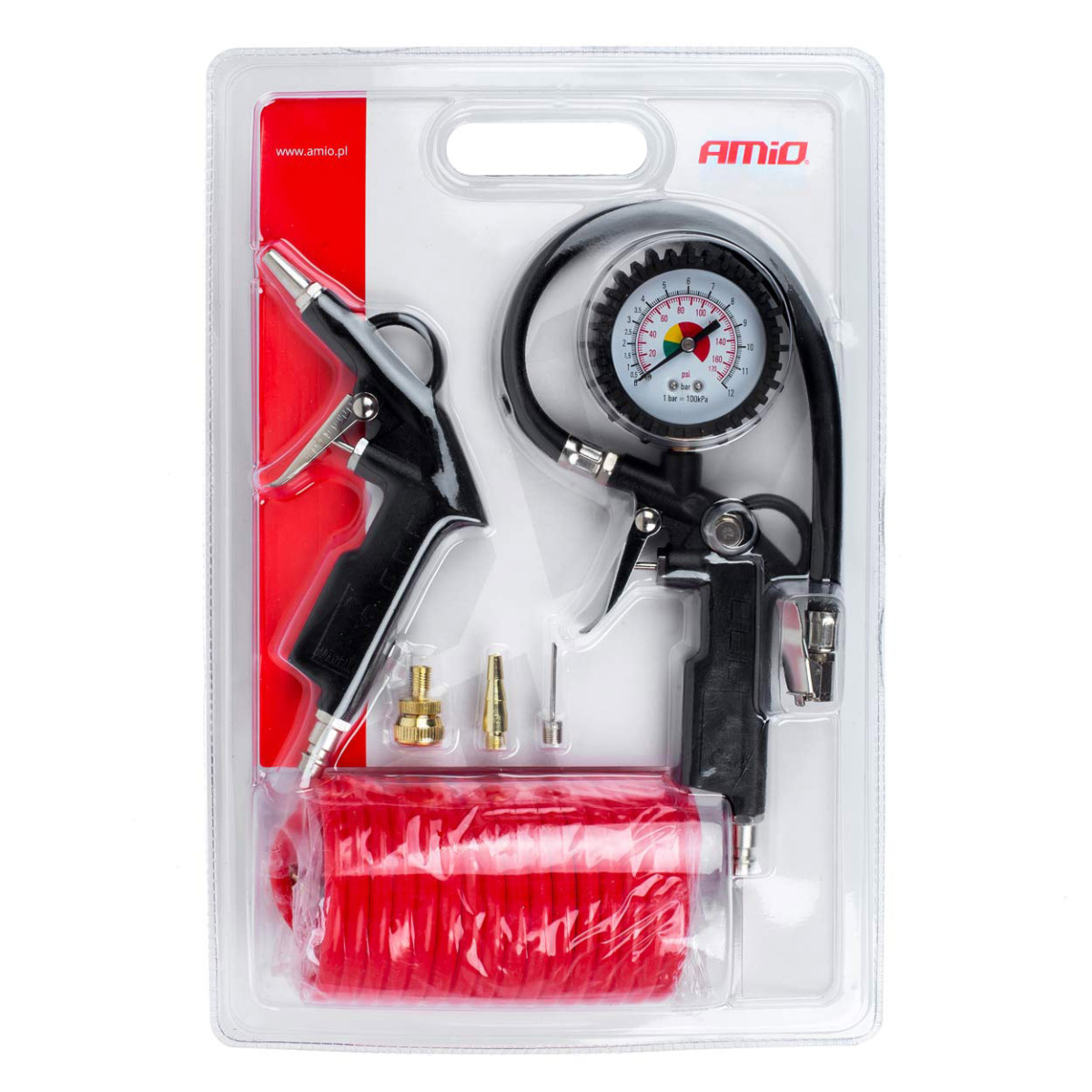 Luftdruckpistole mit Manometer – ein unverzichtbares Werkzeug in jeder Garage. Die Pistole ist handlich, leicht, praktisch und formschön. Sie verfügt über ein Ablassventil und einen Gummischutz für das Manometer.