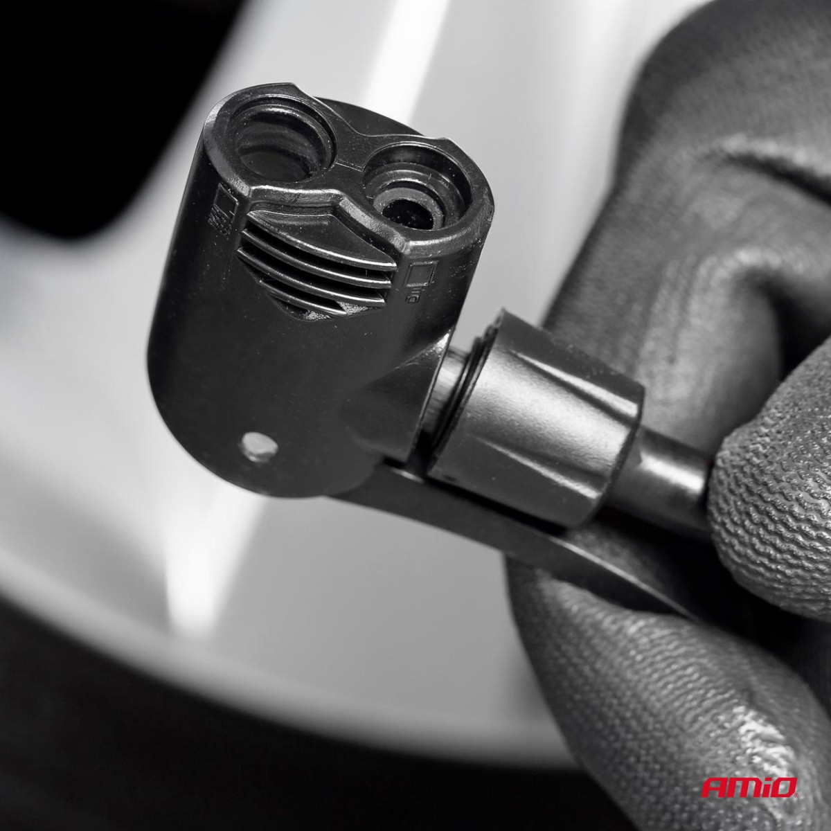Es verfügt über einen doppelseitigen Universalkopf für Auto- und Fahrradventile. Zusätzlich enthält das Set einen Adapter und eine Nadel für aufblasbare Matratzen, Bälle, aufblasbares Spielzeug usw.