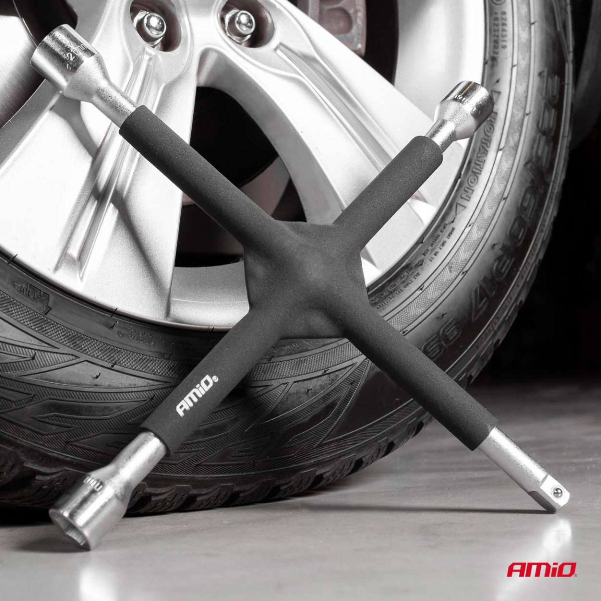 Kreuzförmiger Radmutternschlüssel 17–19–21 mm, 1/2", gummiert, AMIO-02402