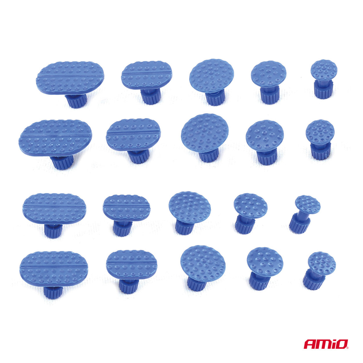 Das Set enthält 20 austauschbare Aufsätze in verschiedenen Durchmessern und bietet so maximale Flexibilität bei der Bearbeitung unterschiedlichster Dellen – von kleinen Stellen bis hin zu größeren Flächendellen. Das ergonomische Werkzeug und die robuste Konstruktion garantieren hohen Arbeitskomfort und gleichbleibende Ergebnisse, sowohl im professionellen Einsatz als auch zu Hause.