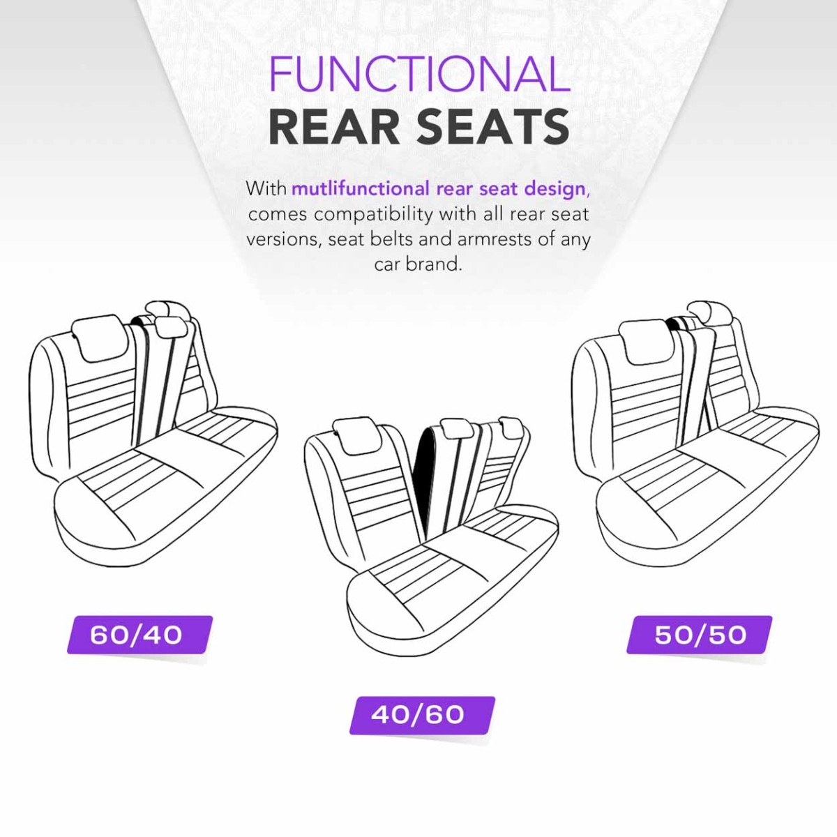 Die Bezüge passen auf die meisten Sitze auf dem Markt (Rücksitzbezug ist komplett, ohne Reißverschlüsse).