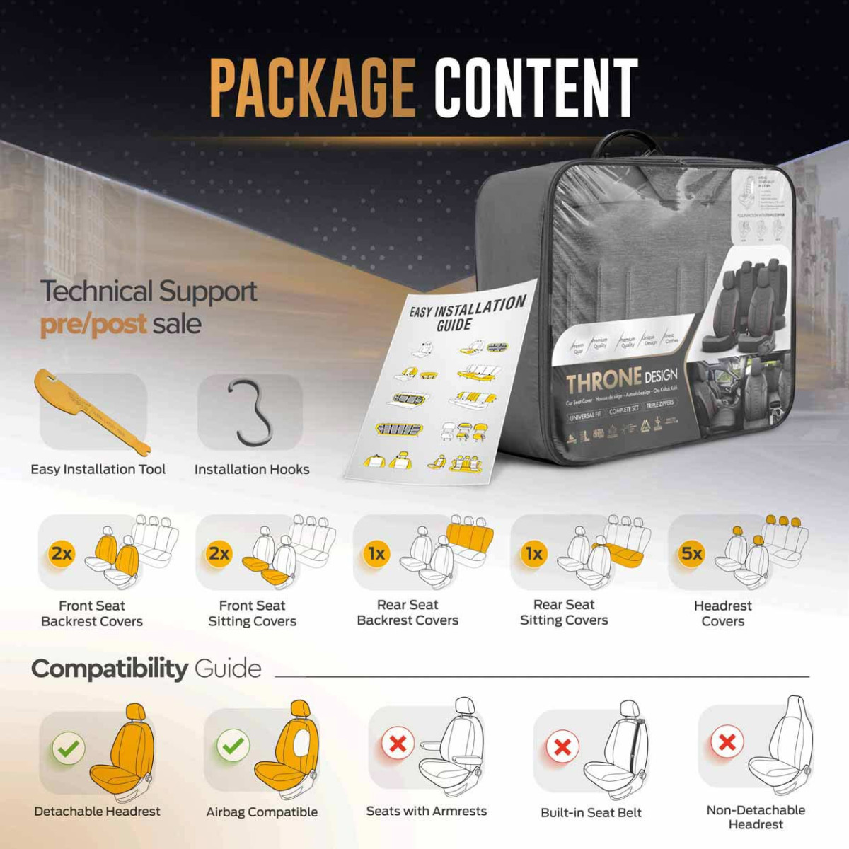 Die Bezüge passen auf die meisten Sitze auf dem Markt (Rücksitzbezug ist komplett, ohne Reißverschlüsse).